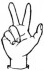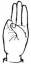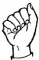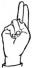 На ћирилици написано ДИНА КУЛАШ састоји се из 9 слова [?]. Исписано ћириличном једноручном азбуком за глувонеме: